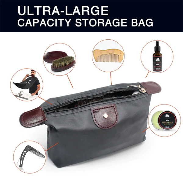 The Beard Grooming Kit comes with 7 different types of self-grooming products. Featuring an ultra-large capacity storage bag that is made of leather to store everything you need for your beard while giving you the luxury to bring it everywhere conveniently.